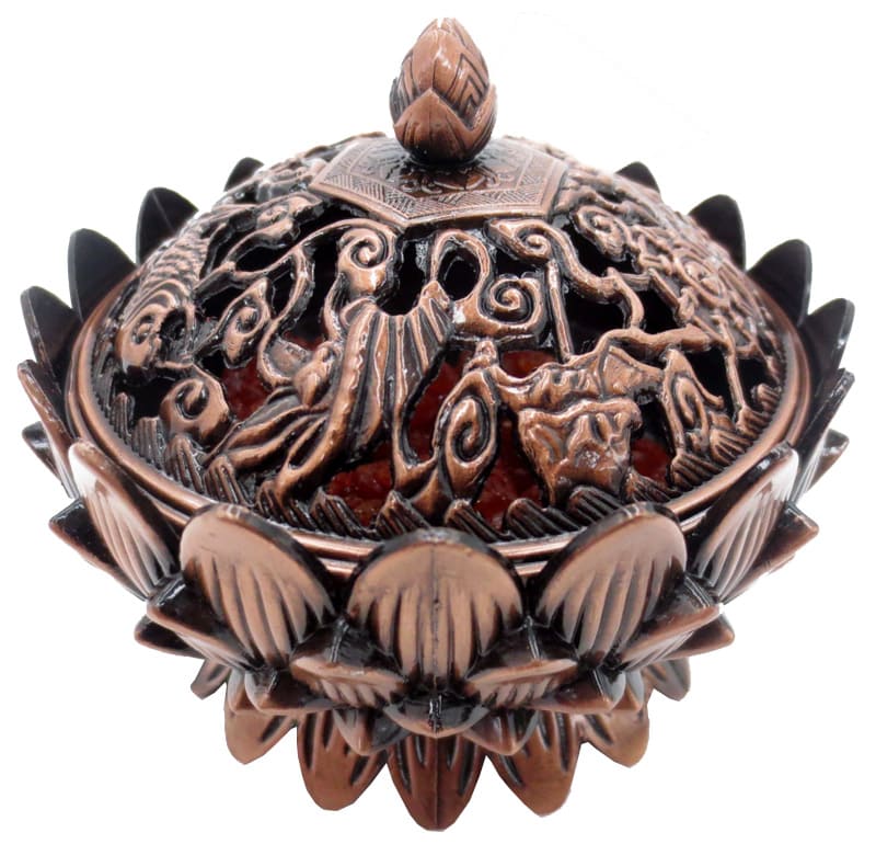 Brûleur encens résine tibetain lotus en cuivre 9cm