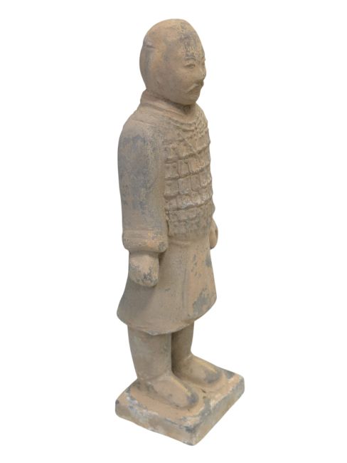 Niezwykle realistyczne terakotowe posągi wojowników i koni wiernie oddają ich wygląd w chwili odkrycia. Proces starzenia jest znacznie bardziej złożony niż w przypadku zwykłych posągów, wymagający skrupulatnej pracy i znacznej ilości czasu. Aby uzyskać autentyczny wygląd, posągi muszą być zakopane w ziemi na pewien czas, a następnie odkopane, wystawione na działanie czynników atmosferycznych i odrestaurowane. Dopiero po naturalnym procesie erozji można uzyskać realistyczny efekt. W związku z tym ich wartość jest znacznie wyższa ze względu na złożoność i autentyczność procesu produkcyjnego.