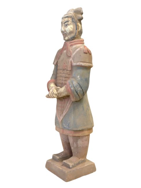 Niezwykle realistyczne terakotowe posągi wojowników i koni wiernie oddają ich wygląd w chwili odkrycia. Proces starzenia jest znacznie bardziej złożony niż w przypadku zwykłych posągów, wymagający skrupulatnej pracy i znacznej ilości czasu. Aby uzyskać autentyczny wygląd, posągi muszą być zakopane w ziemi na pewien czas, a następnie odkopane, wystawione na działanie czynników atmosferycznych i odrestaurowane. Dopiero po naturalnym procesie erozji można uzyskać realistyczny efekt. W związku z tym ich wartość jest znacznie wyższa ze względu na złożoność i autentyczność procesu produkcyjnego.
