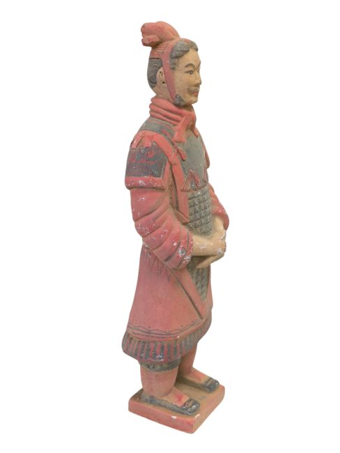Niezwykle realistyczne terakotowe posągi wojowników i koni wiernie oddają ich wygląd w chwili odkrycia. Proces starzenia jest znacznie bardziej złożony niż w przypadku zwykłych posągów, wymagający skrupulatnej pracy i znacznej ilości czasu. Aby uzyskać autentyczny wygląd, posągi muszą być zakopane w ziemi na pewien czas, a następnie odkopane, wystawione na działanie czynników atmosferycznych i odrestaurowane. Dopiero po naturalnym procesie erozji można uzyskać realistyczny efekt. W związku z tym ich wartość jest znacznie wyższa ze względu na złożoność i autentyczność procesu produkcyjnego.