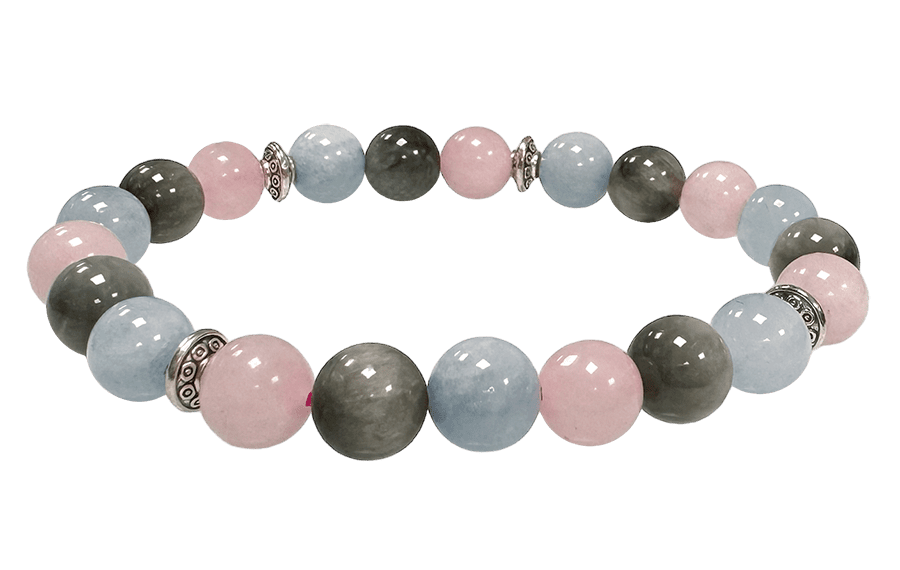 Bransoletka z akwamarynem kwarcem różowym sokolem okiem i zawieszkami z koralikami 8mm