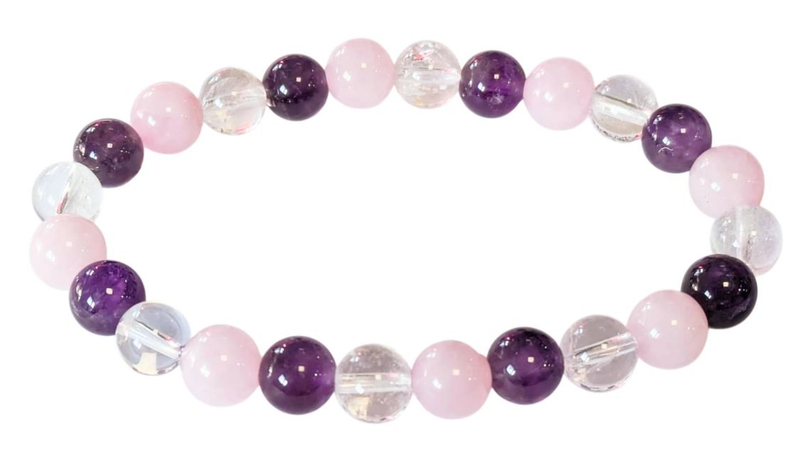 Bransoletka z ametystu kryształu górskiego i kwarcu różowego z koralikami 8 mm