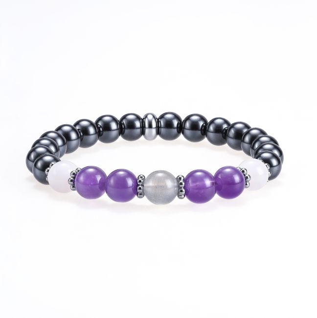 Bransoletka z hematytu, ametystu, kwarcu różowego i labradorytu z koralikami 8 mm