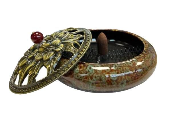 Brązowo-niebieski ceramiczny uchwyt na kadzidełko 14cm