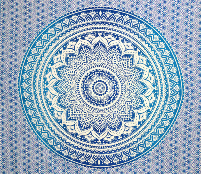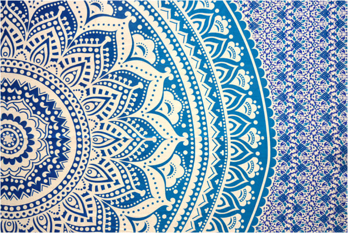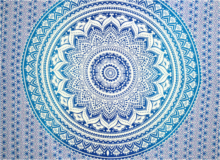 Ciemnoniebieska i jasnoniebieska mandala z lotosem wisząca na ścianie