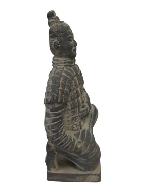 Czarna figura klęczącego łucznika z terakoty, 21 cm