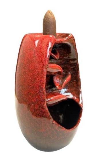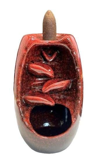 Czerwony ceramiczny uchwyt na kadzidełko z przepływem zwrotnym Kaskada Liści 13cm