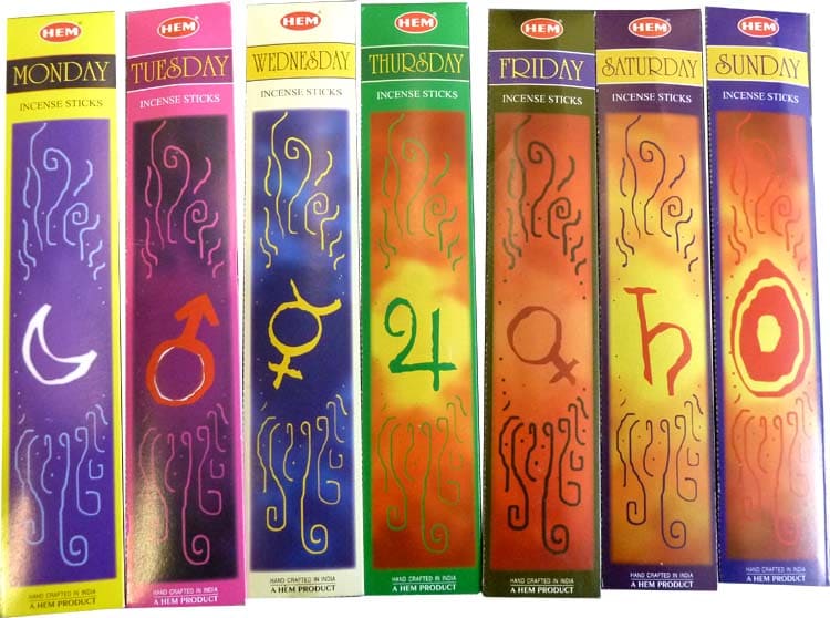 Poniedziałek Bursztyn Wtorek Róża Środa Jaśmin Czwartek Drzewo sandałowe Piątek Mandarynka Sobota Galipan Niedziela Cytryna