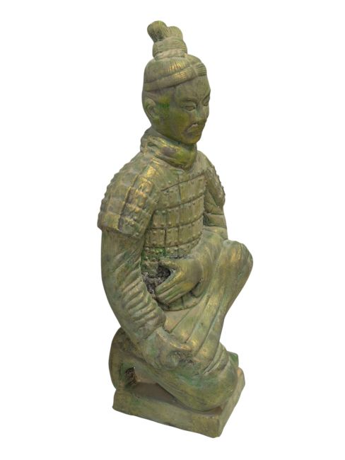 Łucznicy klęczący: Te posągi przedstawiają klęczących łuczników, gotowych do strzału z łuku w kierunku wroga. Ich postawa symbolizuje koncentrację i kunszt łuczniczy.