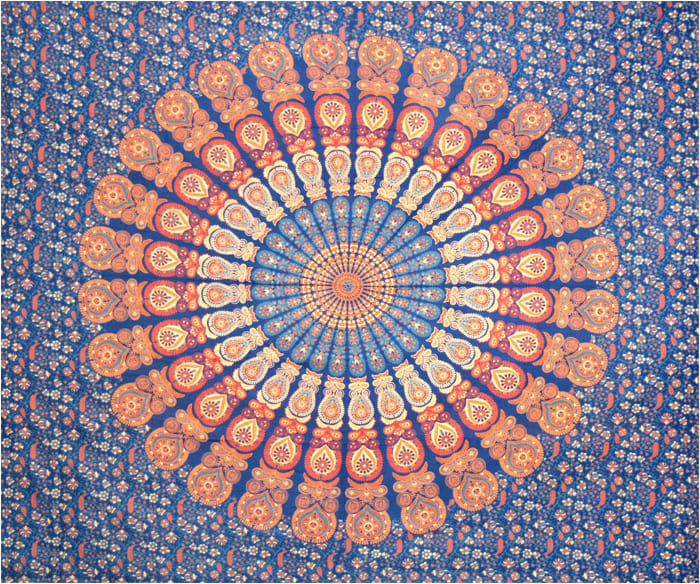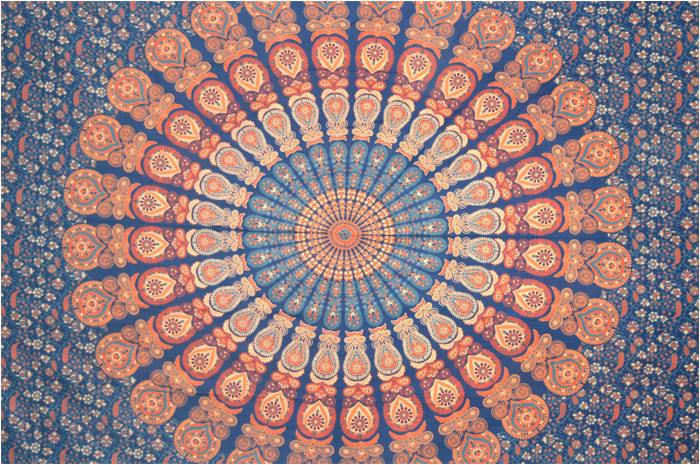 Mandala ścienna wisząca w kolorze ciemnoniebieskim jasnoniebieskim pomarańczowym i czerwonym