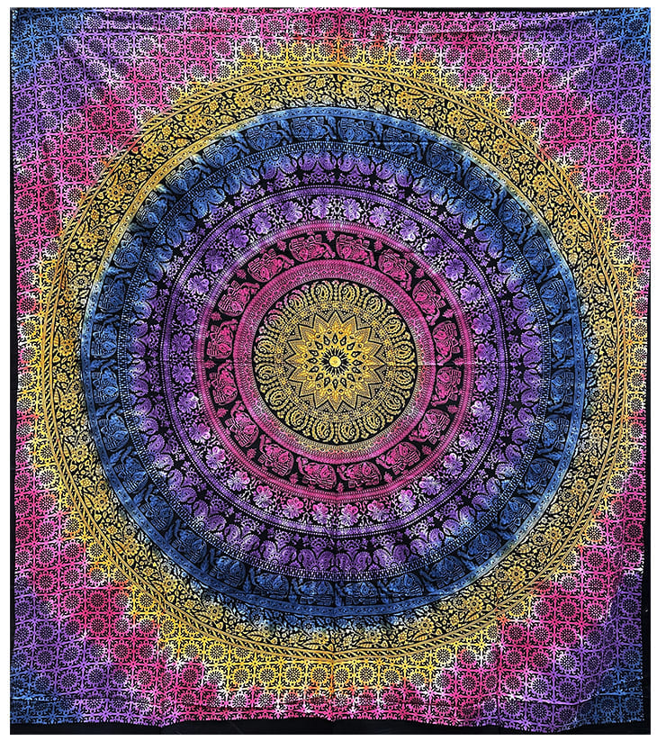 Mandala słoń wiszący fioletowy żółty niebieski różowy