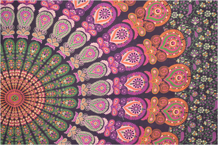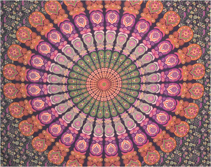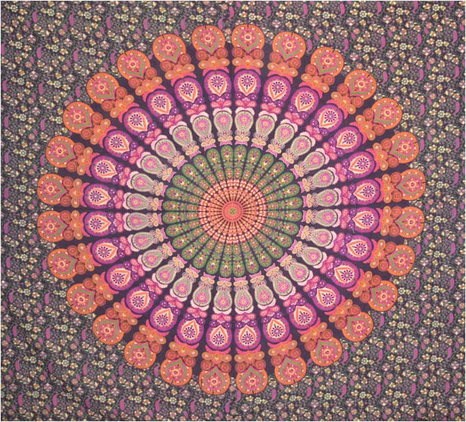 Mandala wisząca na ścianie w kolorze fioletowo-pomarańczowo-zielonym i fuksji