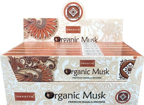Organiczne kadzidło piżmowe Nandita Pudełko 12 torebek po 15 g Ręcznie zwijane masala