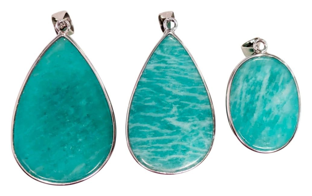 Wisiorek z amazonitu AA+ ze srebra próby 925, 3 sztuki, 15,64 g