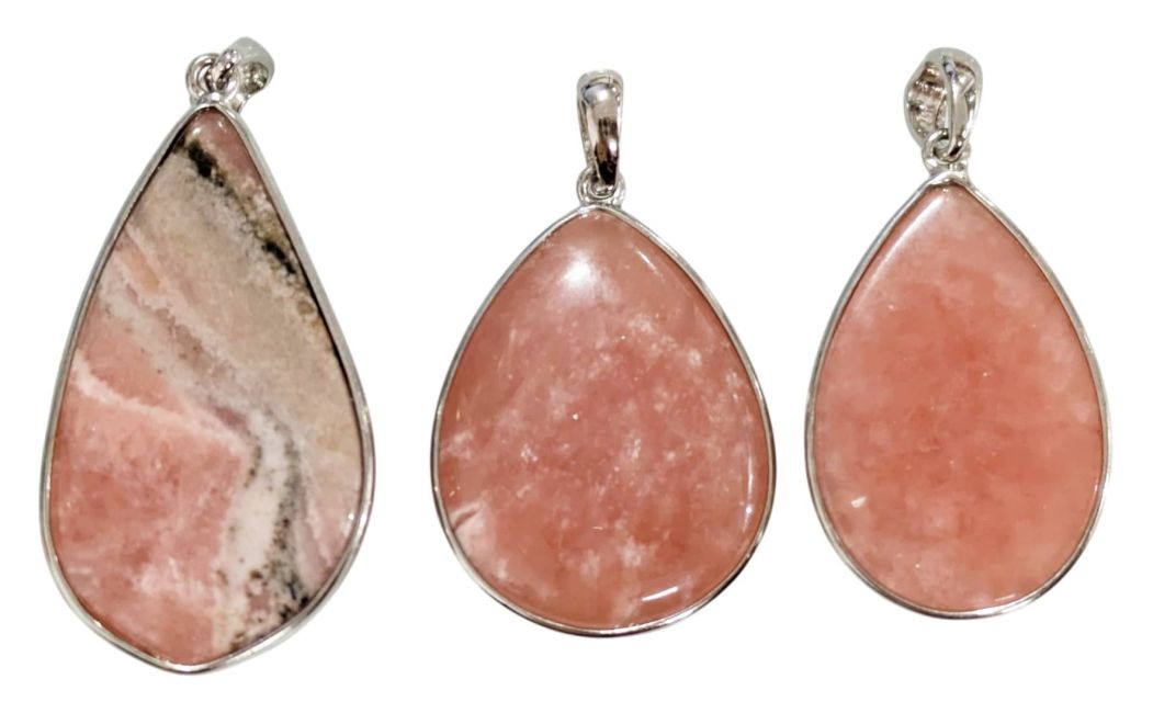 Wisiorek z rodochrozytem ze srebra próby 925, argentyński AA+, 3 sztuki, 12,92 g