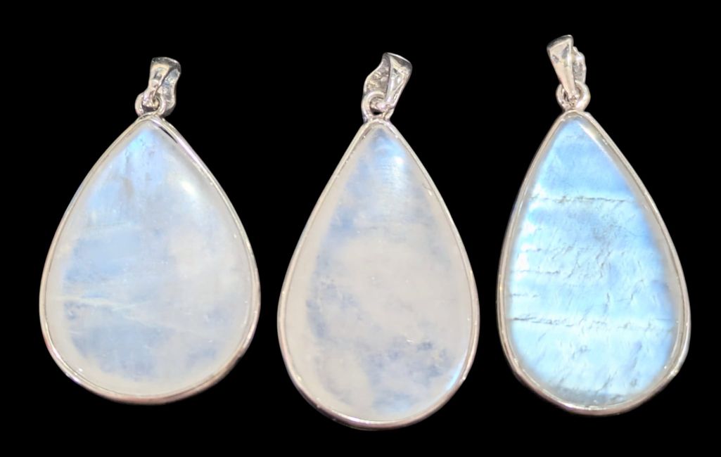 Wisiorek ze srebra próby 925 z białym kamieniem księżycowym AAA, 3 sztuki, 10,87 g
