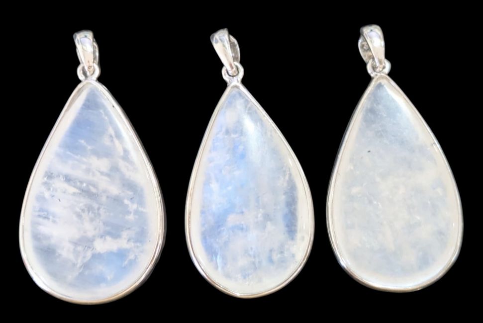 Wisiorek ze srebra próby 925 z białym kamieniem księżycowym AAA, 3 sztuki, 11,07 g
