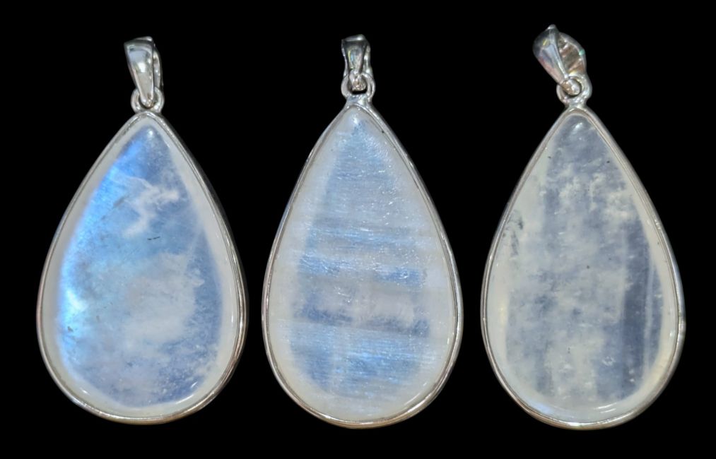 Wisiorek ze srebra próby 925 z białym kamieniem księżycowym AAA, 3 sztuki, 11,3 g