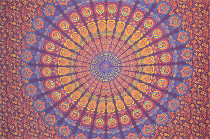 Wisząca mandala w kolorze bordowym jasnoniebieskim pomarańczowym i żółtym
