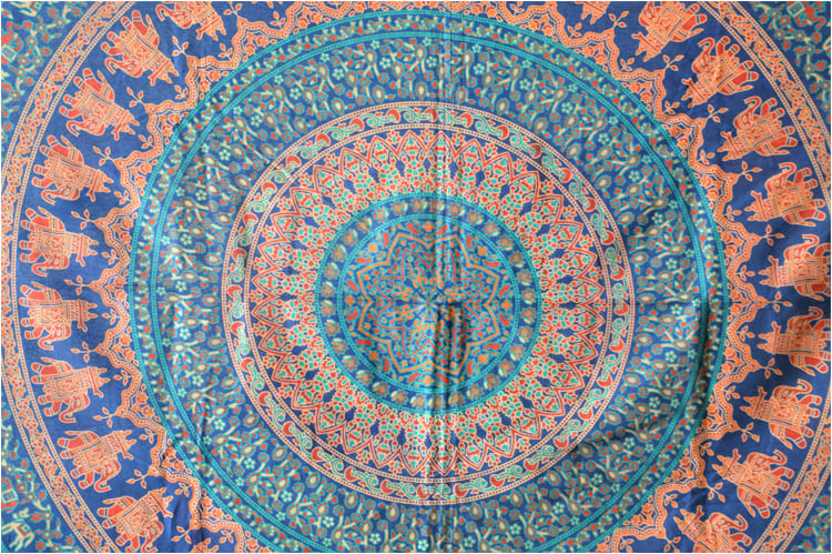 Wisząca mandala w kolorze niebiesko-czerwonym ze słoniem i pawiem
