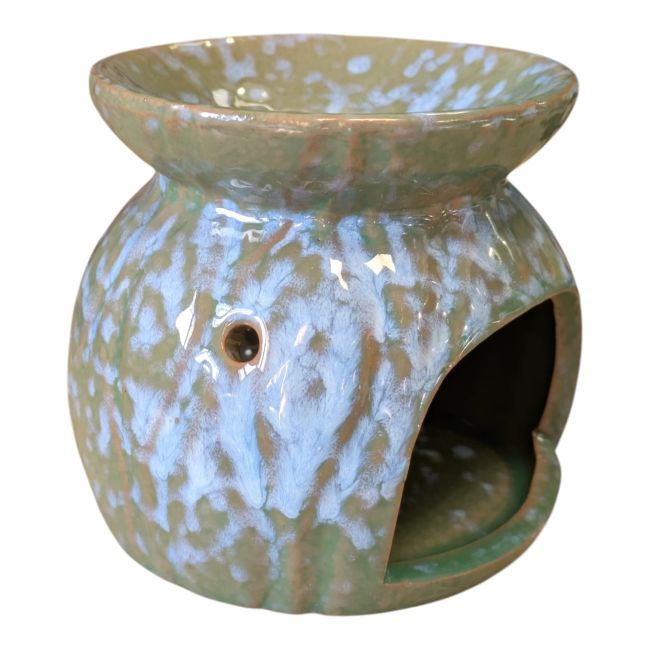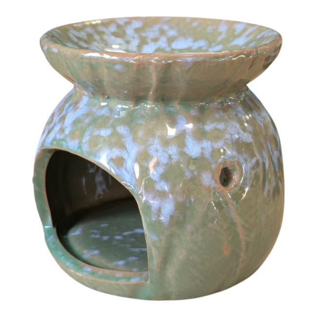 Zielony ceramiczny kominek olejowy z wielokolorowymi odcieniami