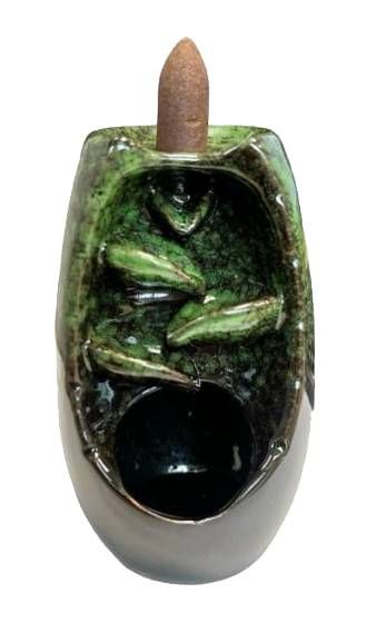 Zielony ceramiczny uchwyt na kadzidełko z przepływem zwrotnym Kaskada Liści 13cm