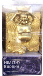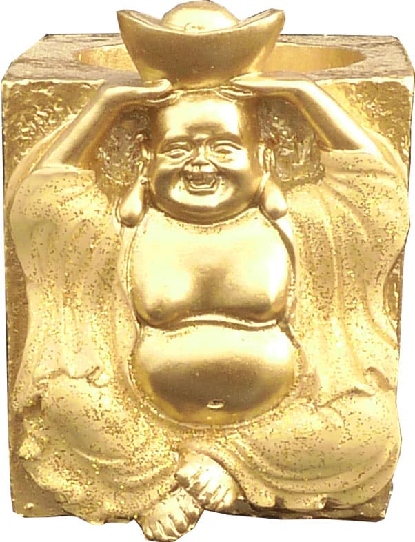 Żywiczny świecznik zdrowia Buddy złoty 7cm